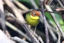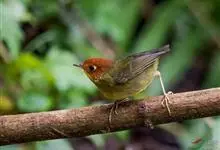 栗头地莺:小型鸣禽。体长约10厘米。体型纤细,是中国体型最小的鸟类之一;喙细尖,上喙先端多有缺刻;翅短圆;尾短至中等;腿短而细。羽色以灰、褐及橄榄绿为主,雌雄羽色相似。栖息于灌木或稀疏林内,…全部>>