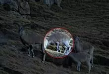 岩羊是偶蹄目牛科岩羊属哺乳动物。颜色与岩石相像,两性皆具角,雄羊角大而弯曲,角外表具不明显的横棱且体壮实,雌羊角短小;头较小,眼大,耳小,颏下无须;体背面为棕灰或石板灰色略有蓝色反光,…全部>>