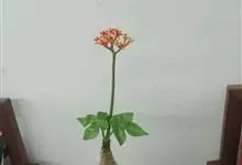 佛肚树是大戟科麻风树属的直立灌木。株高可达1.5米;茎基部或下部通常膨大呈瓶状;枝条粗短,具散生突起皮孔;叶盾状着生,近圆形或宽椭圆形,先端圆钝,基部平截或钝圆,托叶分裂呈刺状,宿存;花序顶生,…全部>>