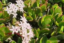 燕子掌 Druce),景天科青锁龙属直立灌木,茎粗壮,多分枝,灰绿色,有老树皮剥落留下的水平棕色条纹;叶具短柄,绿色,无毛,通常具红色边缘,倒卵形;花冠呈星状,…全部>>