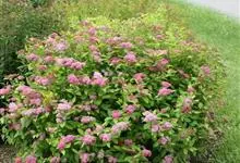 三裂绣线菊是灌木,高1-2米;小枝细瘦,开展,叶片近圆形,伞形花序具花15-30朵;苞片线形或倒披针形,萼筒钟状,花瓣宽倒卵形,蓇葖果开张,花柱顶生稍倾斜,具直立萼片。花期5-6月,果期7-8月。…全部>>