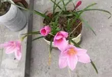 小韭兰学名韭菜莲又名风雨花、菖蒲莲、红玉帘和旱水仙,多年生草本,鳞茎卵球形,基生叶常数枚簇生,线形,扁平,花单生于花茎顶端,下有佛焰苞状总苞,花玫瑰红色或粉红色,蒴果近球形,种子黑色,花期夏秋。韭莲…全部>>