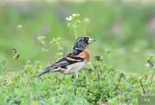 燕雀属小型鸟类,体长14-17厘米。嘴粗壮而尖,呈圆锥状。雄鸟从头至背辉黑色,背具黄褐色羽缘。腰白色,颏、喉、胸橙黄色,腹至尾下覆羽白色,两胁淡棕色而具黑色斑点。两翅和尾黑色,翅上具白斑。…全部>>