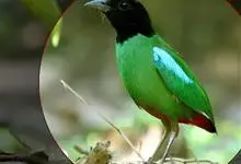 绿胸八色鸫:是雀形目八色鸫科的鸟类,共有12个亚种。体长为16-18厘米,体重65-69克。体型圆胖,尾短,腿长。头黑,上体绿色,两翼深色而具白色斑纹,头顶至后枕深褐,胸及腹部苹果绿,臀亮红。…全部>>
