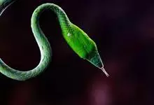 绿瘦蛇是游蛇科,瘦蛇属轻毒性后沟牙毒蛇。体型极细而长,长可达1.5米。头较窄长,与颈区分极明显;吻端略圆而平扁,超出下领;眼大,瞳孔呈一横缝;颊区呈一凹槽;躯干瘦长侧扁,尾甚长而细。背面鲜绿色,…全部>>