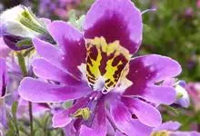 蛾蝶花是茄科,蛾蝶花属一二年生草本植物,全株疏生微粘的腺毛,原种高可达100厘米,叶互生。圆锥花序,顶尘,花多,花瓣平展,花瓣的基部色较深,大多为红色、紫色、堇色,并有黄色斑块。花色丰富,3-4月开放。…全部>>