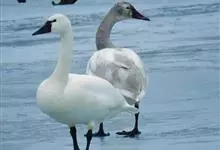小天鹅为大型水禽,体长110~130厘米,体重4~7千克,雌鸟略小。它与大天鹅在体形上非常相似,同样是长长的脖颈,纯白的羽毛,黑色的脚和蹼,身体也只是稍稍小一些,颈部和嘴比大天鹅略短,但很难分辩。最…全部>>