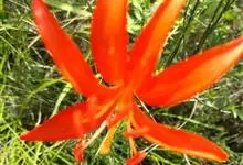 山丹是百合科百合属的多年生草本植物。鳞茎卵形或圆锥形,鳞片长圆形或长卵形,白色;叶散生茎中部,线形,边缘有乳头状突起;花单生或数朵成总状花序,花鲜红色,常无斑点,花被片反卷,…全部>>