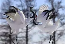 丹顶鹤:是鹤科、鹤属的一种大型涉禽,体长120-160厘米。颈、脚较长,通体大多白色,头顶鲜红色,喉和颈黑色,耳至头枕白色,脚黑色,站立时颈、尾部飞羽和脚黑色,头顶红色,…全部>>