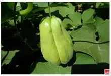 佛手瓜Swartz),又名隼人瓜、安南瓜、寿瓜等,是一种葫芦科佛手瓜属多年生宿根草质藤本植物,因其形如两掌合口有佛教祝福之意,因此多被称为佛手瓜、福寿瓜。植株具块根;叶片膜质,为心状圆形,下面有短柔毛,…全部>>