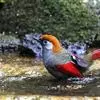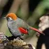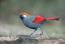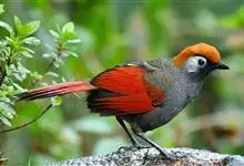 赤尾噪鹛中型鸟类,体长24~28厘米。头顶至后颈红棕色,两翅和尾鲜红色,眼先、眉纹、颊、颏和喉黑色,眼后有一灰色块斑。其余上下体羽大都暗灰或橄榄灰色。特征极明显,特别是通过鲜红色的头顶、翅和尾。…全部>>