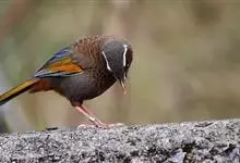 白颊噪鹛是雀形目噪鹛科噪鹛属鸟类,又称土画眉、小画眉、小噪鹃。成鸟额至头顶栗褐色,长眉纹、眼先和颊纹棕白色,眼后至耳羽深褐色,…全部>>
