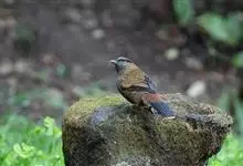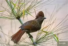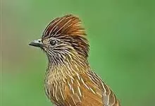 条纹噪鹛是画眉科、噪鹛属中型鸟类,体长28-32厘米。头具短的羽冠,上体栗褐色,飞羽外翻蓝灰色。下体棕栗色,腹以后转为褐白色。除飞羽和尾羽外,所有上、下体羽均具白色羽干纹。极为醒目。野外特征明显,…全部>>