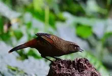 蓝翅噪鹛:噪鹛科、彩翼噪鹛属动物。中型鸟类,体长22-25厘米。上体棕橄榄褐色密被黑色鳞状斑,眼蓝白色,眼上有一长而宽阔的黑色眉纹,从眼先直到颈侧。下体棕褐色被黑色鳞状斑;尾上和尾上覆羽栗色,…全部>>
