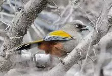 橙翅噪鹛:是噪鹛科、彩翼噪鹛属的中型鸟类,体长22-25厘米。头顶深葡萄灰色或沙褐色。上体灰橄榄褐色,外侧飞羽外翈蓝灰色、基部橙黄色,中央尾羽灰褐色,外侧尾羽外翈绿色而缘以橙黄色并具白色端斑。…全部>>