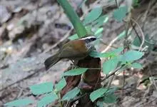 灰腹噪鹛是画眉科、噪鹛属鸟类。中型鸟类,体长21-25厘米。额黑色,头顶黑或灰色,眼先、脸白色。上体橄榄褐至棕褐色,尾和内侧飞羽具窄的白色端斑和宽阔的黑色亚端斑,外侧初级飞羽外翈蓝灰色或灰色,颧纹黑色。…全部>>