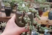 白凤菊,别名姬鹿角,番杏科、覆盆花属,原产地位于南非及美国部分沿海地区。喜温暖干燥和阳光充足的环境,耐旱,怕水湿,无明显休眠期。多年生肉质植物,大株植物呈亚灌木状,茎分枝匍匐或直立,老枝茎干呈棕红色,…全部>>