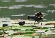 黑水鸡:是鹤形目、秧鸡科的鸟类,共有12个亚种。中型涉禽,体长24-35厘米。嘴长度适中,鼻孔狭长;头具额甲,后缘圆钝;嘴和额甲色彩鲜艳。翅圆形,第2枚初级飞羽最长,或第2枚和第3枚初级飞羽等长,…全部>>
