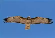 普通鵟:是鹰科、鵟属鸟类,属中型猛禽。体长54厘米,翼展122-137厘米,体重515-810克。体色变化较大,上体主要为暗褐色,下体主要为暗褐色或淡褐色,具深棕色横斑或纵纹,尾淡灰褐色,…全部>>
