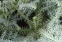 澳洲杉,常绿乔木,一般盆栽为幼树,高在2米以下。喜温暖、潮湿的环境,树冠尖塔形,深绿色。茎干直立,侧枝轮生,水平伸展。小枝二列互生,水平延伸或略下垂。叶有二型。球果近圆形。 全部>>