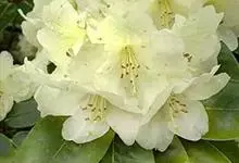 大白杜鹃是杜鹃花科杜鹃花属的常绿灌木,高可达5米。幼枝绿色,无毛;叶厚革质,长圆形或圆状倒卵形,先端钝或圆,基部楔形;总状伞形花序顶生,花序轴疏生白色腺体,花梗粗,具白色有柄腺体,冠宽漏斗状钟形,…全部>>