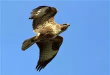 普通鵟:是鹰科、鵟属鸟类,属中型猛禽。体长54厘米,翼展122-137厘米,体重515-810克。体色变化较大,上体主要为暗褐色,下体主要为暗褐色或淡褐色,具深棕色横斑或纵纹,尾淡灰褐色,…全部>>