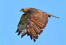 棕尾鵟:是鹰科鵟属的中大型猛禽,体长50-65厘米,体重1280克。成鸟头、颈棕褐色,上体褐色;第2-5枚初级飞羽外翈具横斑;下体棕白色;尾部棕褐色,与其他种类的鵟不同。飞行时,翅上举呈“V”形,…全部>>