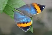 枯叶蛱蝶,又名木叶蝶、树叶蝶等,属于蛱蝶科。翅正面黑褐色,具深蓝色光泽,前翅顶角尖出,顶区有1枚小白点,中部有1条倾斜的橙色斑带,从前缘延伸至Cu室外缘,u室中部有1枚黑色圆斑,…全部>>