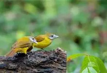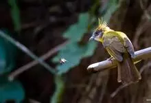 黄腹冠鹎:体长19-24厘米,是一种体型略大的褐色鹎。头顶橄榄褐色具黑褐色羽冠。白色的喉膨起,下体黄色。似白喉冠鹎但较鲜亮,上体褐色较重,腹部为鲜亮的柠檬黄色。虹膜褐色;嘴黑色;脚粉红色。…全部>>