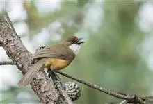 白颊噪鹛是雀形目噪鹛科噪鹛属鸟类,又称土画眉、小画眉、小噪鹃。成鸟额至头顶栗褐色,长眉纹、眼先和颊纹棕白色,眼后至耳羽深褐色,…全部>>