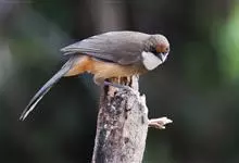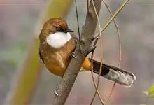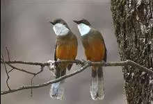 白颊噪鹛是雀形目噪鹛科噪鹛属鸟类,又称土画眉、小画眉、小噪鹃。成鸟额至头顶栗褐色,长眉纹、眼先和颊纹棕白色,眼后至耳羽深褐色,…全部>>