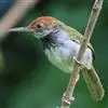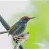 黑喉缝叶莺:体长11.5厘米,是一种小型的顶冠棕色、腹部白色的莺。尾甚长而常上翘,臀黄色,具特征性的偏黑色喉,上体橄榄绿色,头侧灰色。雌鸟色暗,头少红色且喉少黑色。与长尾缝叶莺的区别在后顶冠亦为棕色,…全部>>