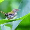 普通缝叶莺,是雀形目鹅科莺亚科缝叶莺属一种。体长10-14厘米,体重7-10克,雄鸟前额棕红,头顶至枕棕橄榄褐,上体橄榄绿染黄,飞羽及尾羽暗褐;繁殖期雄鸟的中央尾羽特形延长,下体淡皮黄白色。…全部>>