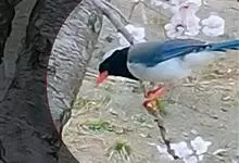 红嘴蓝鹊,别名山鹊、长尾鹊,是鸦科蓝鹊属的一种观赏性较强的大型鸣禽。该物种为体长54~65cm,头、颈、喉和胸黑色,头顶至后颈有一块白色至淡蓝白色或紫灰色块斑,其余上体紫蓝灰色或淡蓝灰褐色。尾长呈凸状,…全部>>