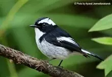 小斑姬鹟体长12厘米,体羽是黑白两色或褐色及白色。栖息于热带、亚热带的潮湿低地森林和山地森林。常单独或成对活动,多在树冠下层低枝处活动和觅食,也常飞到空中捕食飞行性昆虫,捉到昆虫后又落于较高的枝头上。…全部>>