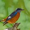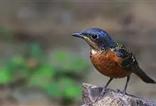 白喉矶鸫是鸫科、矶鸫属小型鸟类,体长17-18厘米。雄鸟头顶和翅上覆羽钴蓝色,背、两翅和尾黑色具白色翅斑,腰和下体栗色,喉白色。雌鸟上体橄榄褐色具黑色鳞状斑,两翅和尾灰褐色,头顶灰褐色,喉白色,…全部>>