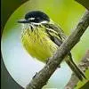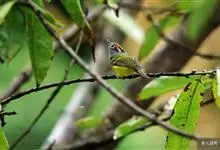 黑脸鹟莺:体长10厘米,是有特色的体小而多彩的莺鸟。粗眉纹,颏、喉及尾下覆羽黄色,脸罩黑,头顶及颈背灰色,上体绿,无翼纹,腹白。虹膜褐色;上嘴色深,下嘴肉色;脚偏绿色。…全部>>