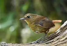 白喉短翅鸫是鹟科、短翅鸫属小型鸟类,体长12-13厘米。上体锈褐或橄榄褐色,眼上方有1-2枚白羽,颏、喉纯白色,胸、腹亦白色,但羽缘浅褐色。虹膜暗褐色,嘴暗褐色,下嘴较淡,脚淡褐色、肉色或暗紫肉色。…全部>>