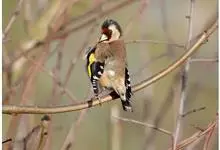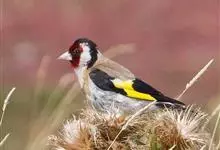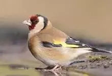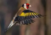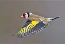 红额金翅雀:共有14个亚种。小型鸟类,体长12-14厘米。额、脸颊和颏朱红色,眼先和眼周黑色,在淡色的头部极为醒目。上体灰褐或乌褐色,尾上覆羽白色,两翅和尾黑色,翅上有黄色斑。下体喉、胸灰褐或乌褐色…全部>>