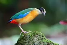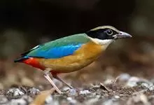 蓝翅八色鸫是雀形目八色鸫科的鸟类。体长17-20厘米,体重类约48-70克,体型圆胖,尾短,腿长,以身体具有红、绿、蓝、白、黑、黄、褐、栗等鲜艳夺目,丰富艳丽的色彩而得名,是很有观赏价值的鸟类。主要…全部>>