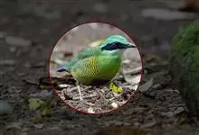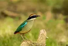 绿胸八色鸫:是雀形目八色鸫科的鸟类,共有12个亚种。体长为16-18厘米,体重65-69克。体型圆胖,尾短,腿长。头黑,上体绿色,两翼深色而具白色斑纹,头顶至后枕深褐,胸及腹部苹果绿,臀亮红。…全部>>