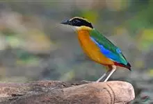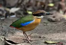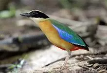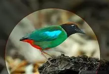 蓝翅八色鸫是雀形目八色鸫科的鸟类。体长17-20厘米,体重类约48-70克,体型圆胖,尾短,腿长,以身体具有红、绿、蓝、白、黑、黄、褐、栗等鲜艳夺目,丰富艳丽的色彩而得名,是很有观赏价值的鸟类。主要…全部>>