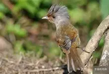 栗额斑翅鹛是噪眉科、斑翅鹛属中型鸟类,体长20-23厘米。头顶具浓密的羽冠,前额栗棕色,头顶灰褐色。上体棕褐色,两翅棕褐色具黑色横斑,翅基外缘有一黑斑,尾呈凸状,棕褐色具黑色横斑。下体棕褐色,…全部>>