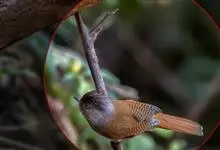 黑喉缝叶莺:体长11.5厘米,是一种小型的顶冠棕色、腹部白色的莺。尾甚长而常上翘,臀黄色,具特征性的偏黑色喉,上体橄榄绿色,头侧灰色。雌鸟色暗,头少红色且喉少黑色。与长尾缝叶莺的区别在后顶冠亦为棕色,…全部>>