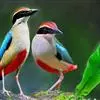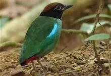 绿胸八色鸫:是雀形目八色鸫科的鸟类,共有12个亚种。体长为16-18厘米,体重65-69克。体型圆胖,尾短,腿长。头黑,上体绿色,两翼深色而具白色斑纹,头顶至后枕深褐,胸及腹部苹果绿,臀亮红。…全部>>