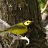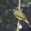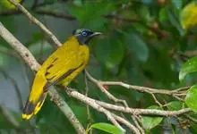 黑冠黄鹎:体长18-21厘米,是一种中等体型偏黄色鹎。整个头、颈、颏、喉黑色,头顶有显著直立的羽冠,黑色,上体褐橄榄黄绿色,下体橄榄黄色。虹膜偏红;嘴及脚黑色。…全部>>