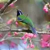 金额叶鹎是和平鸟科、叶鹎属的鸟类。体长16-20厘米。额和头顶前部金桔色,整个上体包括两翅表面草绿色。颏、喉黑色,其外围有一圈黄色,其余下体浅绿色,翼缘蓝紫色,翅上小覆羽翠蓝色。野外特征极明显,…全部>>