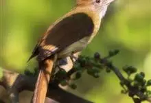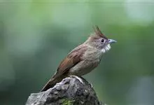 白喉冠鹎:体长20-25厘米。头顶红褐色,有长而细的羽冠、红褐色,头侧灰色。上体橄榄绿黄色,飞羽暗褐色,外翈茶黄色,尾下覆羽皮黄色。…全部>>