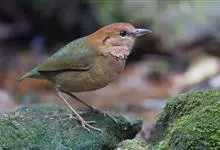栗头八色鸫又叫锅巴雀,体长为24-26厘米,体重100-135克,是雀形目八色鸫科的鸟类。体型圆胖,尾短,腿长,常在森林底层或低植被中找食无脊椎动物。叫声简单哀婉。…全部>>