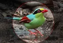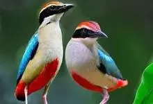 蓝翅八色鸫是雀形目八色鸫科的鸟类。体长17-20厘米,体重类约48-70克,体型圆胖,尾短,腿长,以身体具有红、绿、蓝、白、黑、黄、褐、栗等鲜艳夺目,丰富艳丽的色彩而得名,是很有观赏价值的鸟类。主要…全部>>